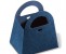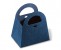 Embalagem azul em formato triangular.
