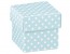 Cubo azul com bolinhas brancas impressas.